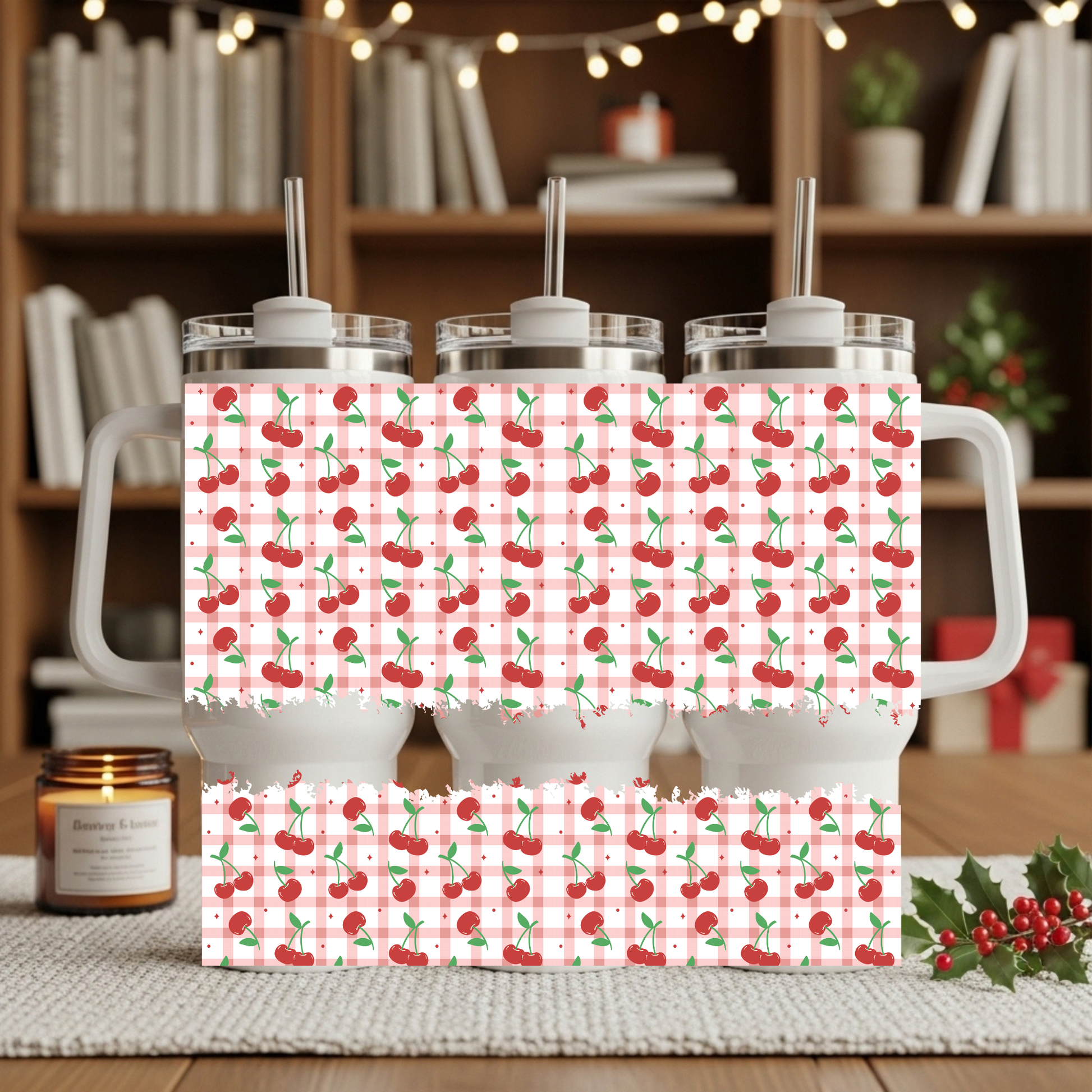 Pink Gingham Cherries 40oz Tumbler